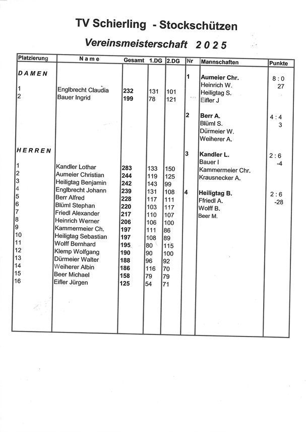 Vereinsmeistertitel vor Christian Aumeier mit 244 Punkten und Benjamin Heiligtag mit 242 Punkten. Auf den weiteren Plätzen folgten: Johann Englbrecht, Alfred Berr, Stephan Blüml, Alexander Friedl,